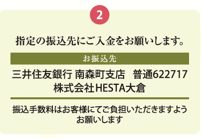 ※ご入金はお振込みのみとさせていただきます。予めご了承ください。